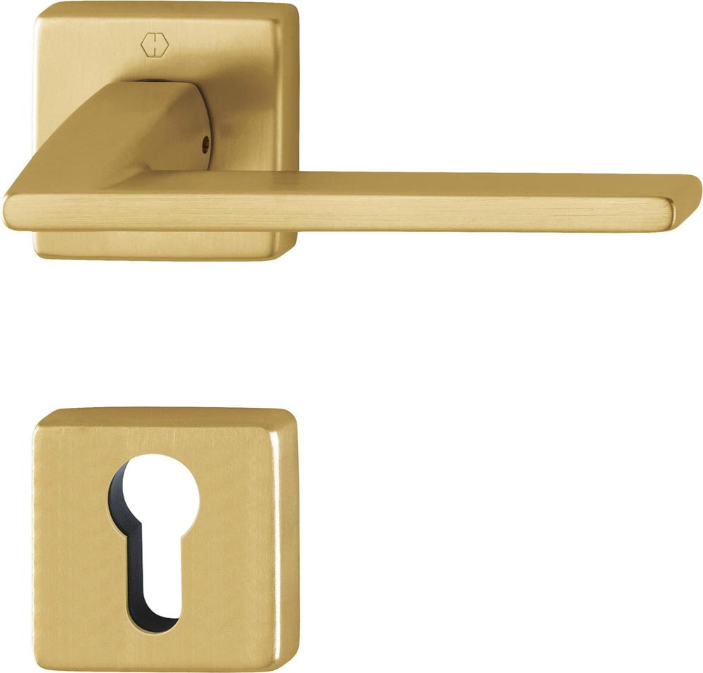 HOPPE-Messing-Rosetten-Türgriff-Garnitur mit Schlüsselrosetten für Innentüren, geprüft nach DIN EN 1906: 37-0140A, Objekt-Garnitur Lagerung: Türgriffe lose, Rückholfedern rechts/links verwendbar, wartungsfreie Gleitlager Verbindung: HOPPE-Schnellstift mit HOPPE-Vollstift (Loch-/Lochteil) Unterkonstruktion: Kunststoff, Stütznocken Befestigung: verdeckt, durchgehend, wechselseitig, Mehrzweckschrauben