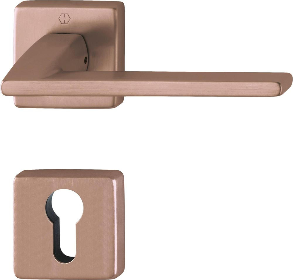 HOPPE-Messing-Rosetten-Türgriff-Garnitur mit Schlüsselrosetten für Innentüren, geprüft nach DIN EN 1906: 37-0140A, Objekt-Garnitur Lagerung: Türgriffe lose, Rückholfedern rechts/links verwendbar, wartungsfreie Gleitlager Verbindung: HOPPE-Schnellstift mit HOPPE-Vollstift (Loch-/Lochteil) Unterkonstruktion: Kunststoff, Stütznocken Befestigung: verdeckt, durchgehend, wechselseitig, Mehrzweckschrauben