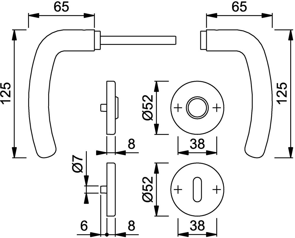 | Drückertiefe | 65 mm |
