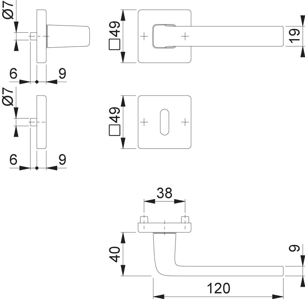 Rosettengarnitur Dublin 1124 / 843KV/843KVS Aluminium F249 eckig OB DIN links / rechts D/D E6426411