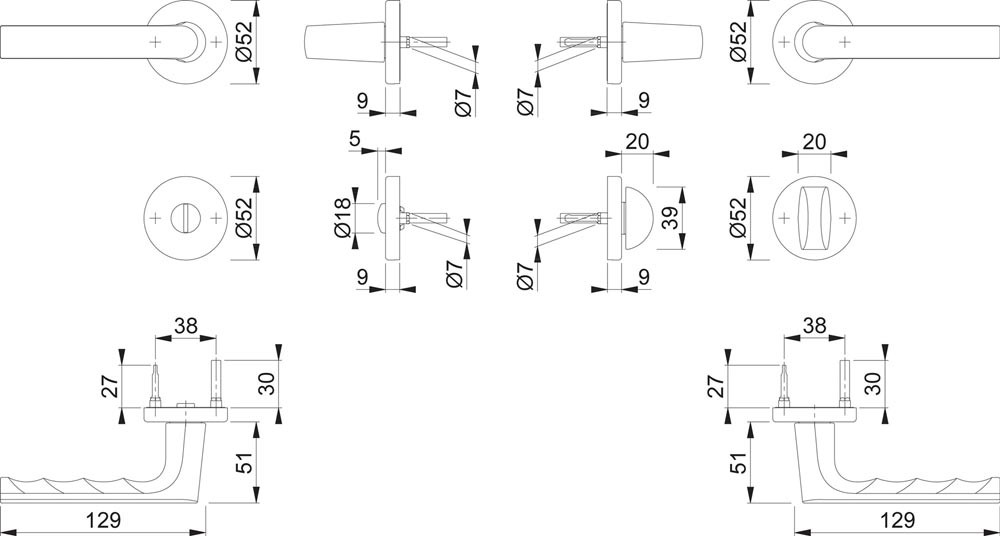 Rosettengarnitur Hamburg 1700 / 42KB/42KBS Aluminium F1 rund SK/OL DIN links / rechts D/D