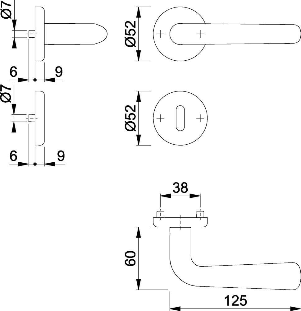 für Zimmertüren · verdeckte, durchgehende Verschraubung mit selbstschneidenden Gewindeschrauben · Kunststoff-Unterkonstruktion mit Stütznocken · mit Hochhaltefeder · Türgriff mit Profilstift-Verbindung · Vierkant 8 mm · für Türstärke 37 - 42 mm · Anschlagrichtung DIN links / rechts