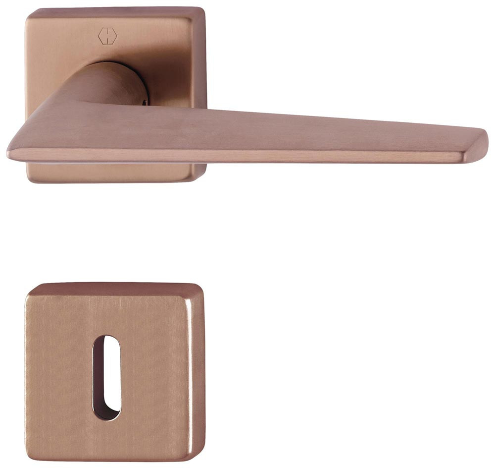 HOPPE-Messing-Rosetten-Türgriff-Garnitur mit Schlüsselrosetten für Innentüren, geprüft nach DIN EN 1906: 37-0140A, Objekt-Garnitur Lagerung: Türgriffe lose, Rückholfedern rechts/links verwendbar, wartungsfreie Gleitlager Verbindung: HOPPE-Schnellstift mit HOPPE-Vollstift (Loch-/Lochteil) Unterkonstruktion: Kunststoff, Stütznocken Befestigung: verdeckt, durchgehend, wechselseitig, Mehrzweckschrauben