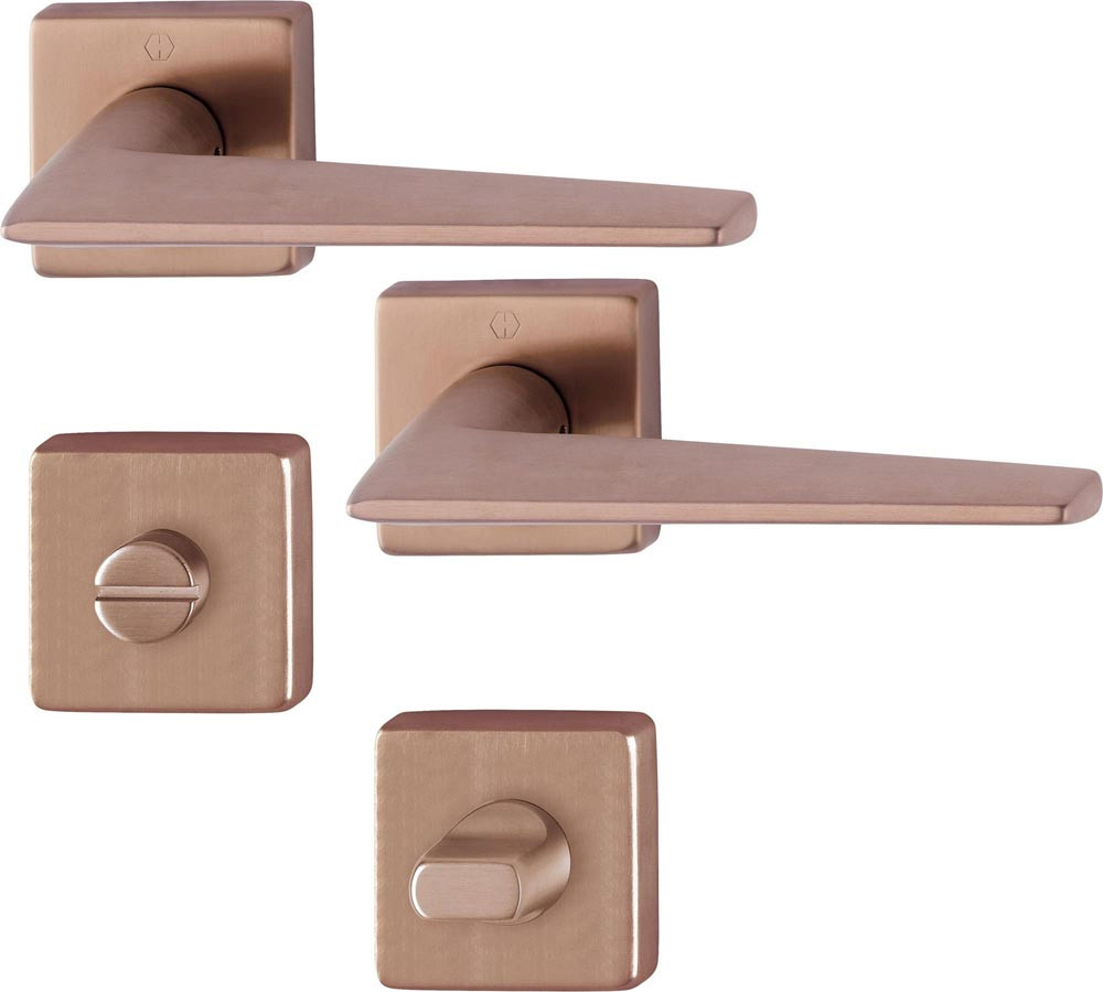 HOPPE-Messing-Rosetten-Türgriff-Garnitur mit Schlitzkopf/Olive für Bad/WC-Türen, geprüft nach DIN EN 1906: 37-0140A, Objekt-Garnitur Lagerung: Türgriffe lose, Rückholfedern rechts/links verwendbar, wartungsfreie Gleitlager Verbindung: HOPPE-Schnellstift mit HOPPE-Vollstift (Loch-/Lochteil) Unterkonstruktion: Kunststoff, Stütznocken Befestigung: verdeckt, durchgehend, wechselseitig, Mehrzweckschrauben