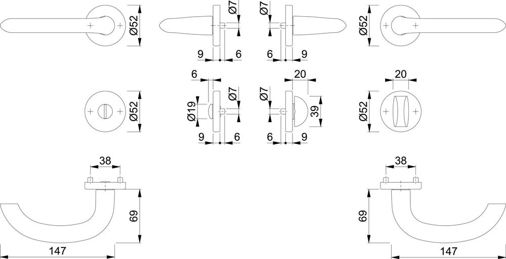 Innentür-Rosetten-Garnitur geprüft nach DIN EN 1906 (Gebrauchs-Kategorie Klasse 3) · Türgriffe mit Schnellstift-Verbindung (mit 8 mm Vollstift) für Türstärke 37 - 42 mm und Rückholfeder · Rosetten mit Stütznocken unsichtbar verschraubt · Anschlagrichtung DIN links / rechts