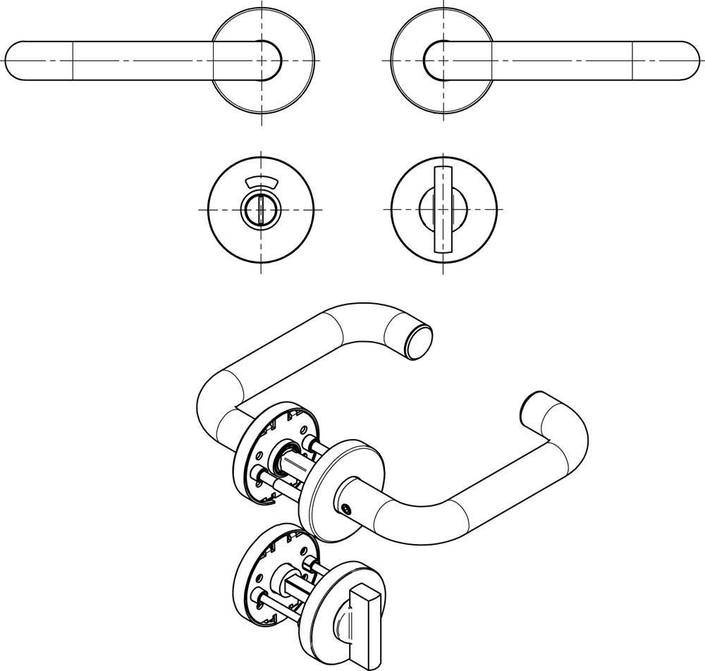 Rosettengarnitur OGRO 8100 8MM/6501/7122 WC ER Edelstahl ER rund WC DIN links / rechts D/D