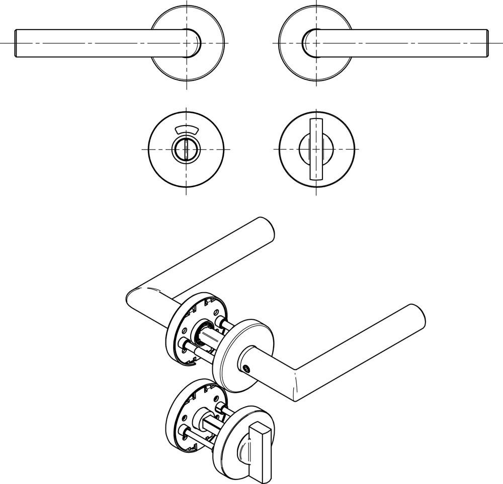Rosettengarnitur OGRO 8906 8MM/6501/7122 WC ER Edelstahl ER rund WC DIN links / rechts D/D