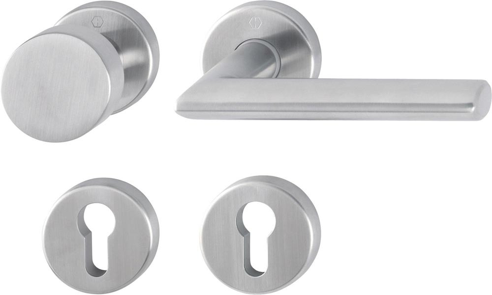 Rosettengarnitur Stockholm E1140Z/42KV/42KVS Edelstahl F69 rund SK/OL DIN links / rechts D/D E6428105