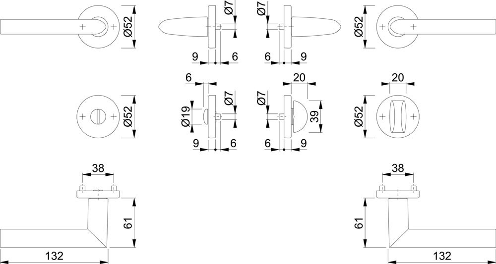 Innentür-Rosetten-Garnitur geprüft nach DIN EN 1906 (Gebrauchs-Kategorie Klasse 3) · Türgriffe mit Schnellstift-Verbindung (mit 8 mm Vollstift) für Türstärke 37-42 mm und Rückholfeder · Rosetten mit Stütznocken unsichtbar verschraubt · Drückerlänge bei Aluminium 132 mm, bei Edelstahl 131 mm · Anschlagrichtung DIN links / rechts