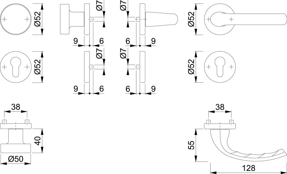 Rosettengarnitur Tky 58/42KV/42KVS/1710 Aluminium F1 rund PZ DIN links / rechts flach D/K E6428207