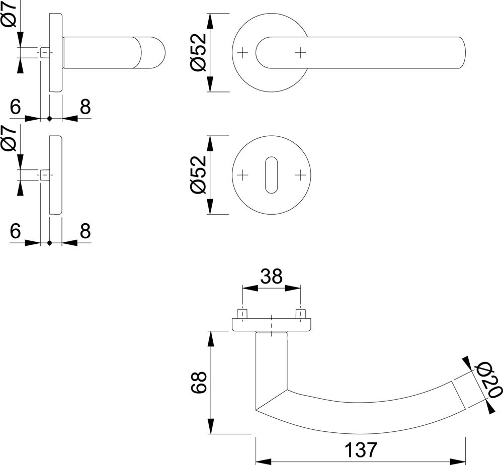 Rosettengarnitur Trondheim E1430Z/42KV/42KVS Edelstahl F69 rund SK/OL DIN links / rechts D/D E6428218