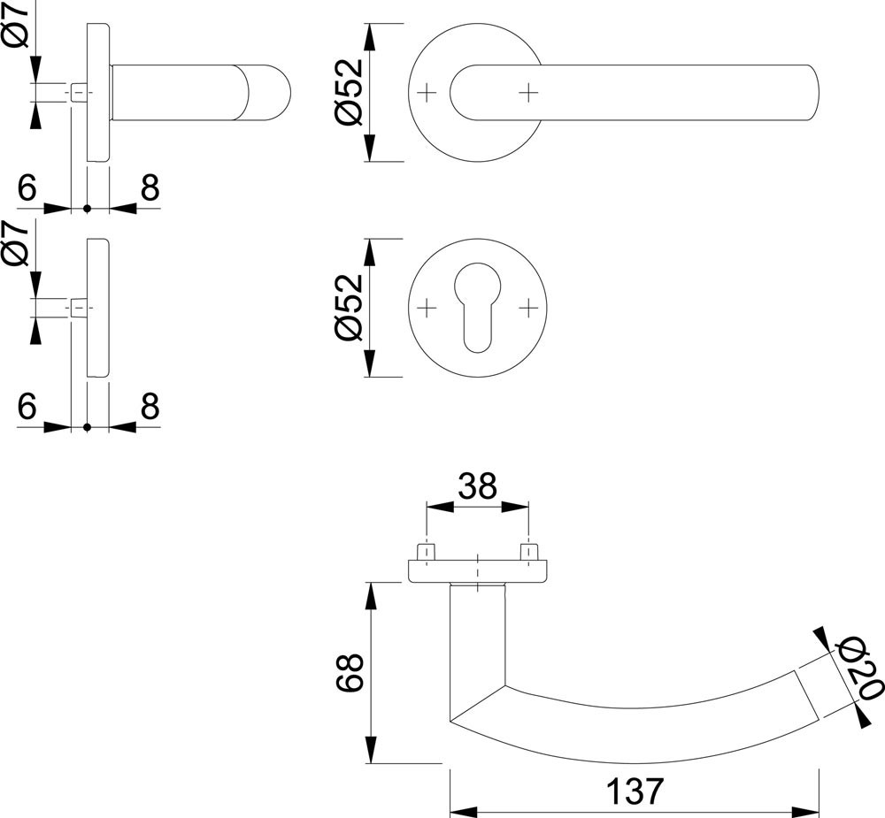Rosettengarnitur Trondheim E1430Z/42KV/42KVS Edelstahl F69 rund SK/OL DIN links / rechts D/D E6428218