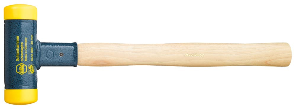 Ausführung: Kräftiges Präzisions-Stahlrohr mit angeschweißter Stielhülse, pulverbeschichtet mit auswechselbaren Einsätzen aus farbechten, verschleißfestem Polyurethan ∙ Rückschlagfrei durch Hartgusskugeln im Hammerkörper ∙ Hickorystiel mit hochwertiger Oberflächenbeschichtung