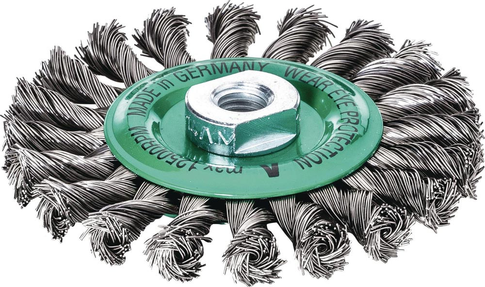 Rundbürste Ø 125 mm Drahtstärke 0,50 mm Edelstahl glatt 14 mm 12500 min- 1