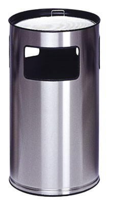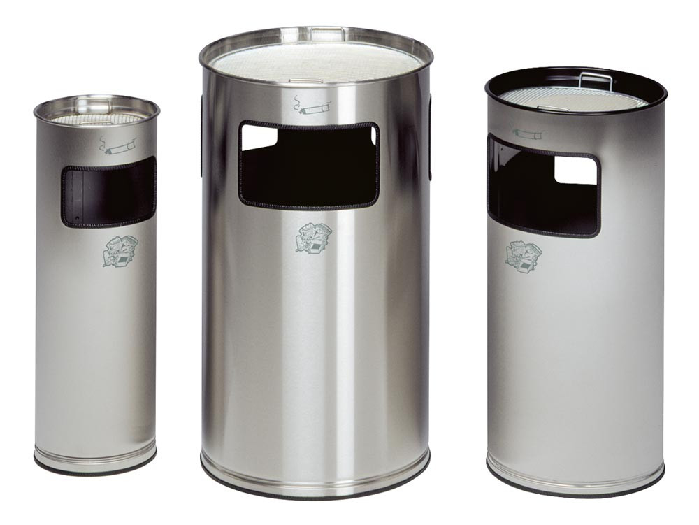 Runder Kombi-Ascher aus Edelstahl, Vol. 69 l, Aschereinsatz und Kippensieb aus Edelstahl, Höhe 750 mm, Durchm. 420 mm