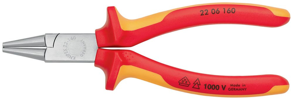 Rundzange Länge 160 mm Zange verchromt VDE Mehrkomponenten-Hüllen