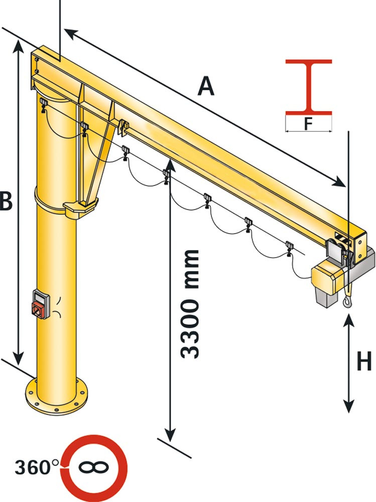 Säulenschwenkkran, ohne Elektrokettenzug, Traglast 1000 kg, Schwenkbereich 360 Grad, Ausladung 5000 mm, Bauhöhe 3730 mm