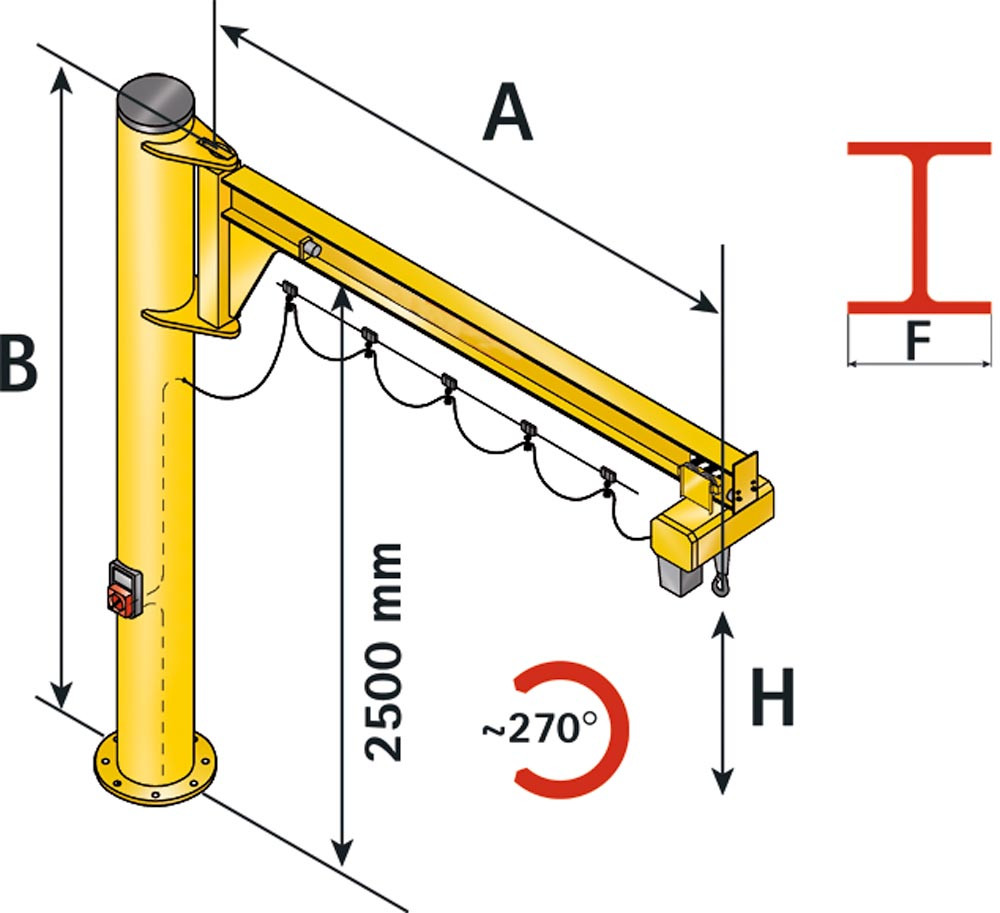 Säulenschwenkkran, ohne Elektrokettenzug, Traglast 250 kg, Schwenkbereich 270 Grad, Ausladung 3000 mm, Bauhöhe 2790 mm E838715