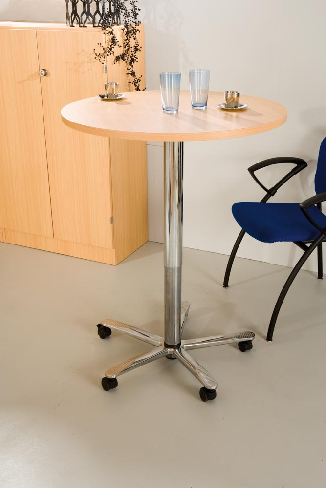 Säulentisch, Durchm.xH 800x720-1140 mm, Gasdruckfeder, Tischplatte 25 mm buche, Gestell chrom, inkl. Gleiter und 5 Rollen, 2 mit Feststeller