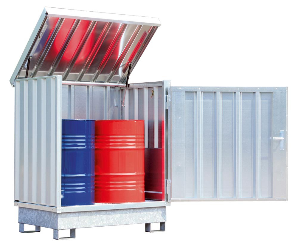 SafeMaster verzinkt, für VbF-Klasse AI, AII, AIII und B, für 4x200 l Fässer, Auffangvolumen 209 l, BxTxH 1420x1490x1610 mm E810385
