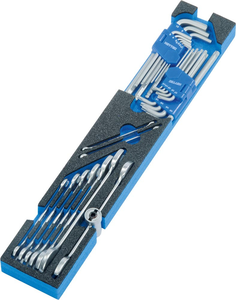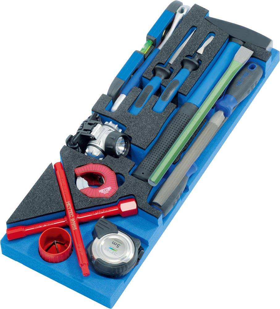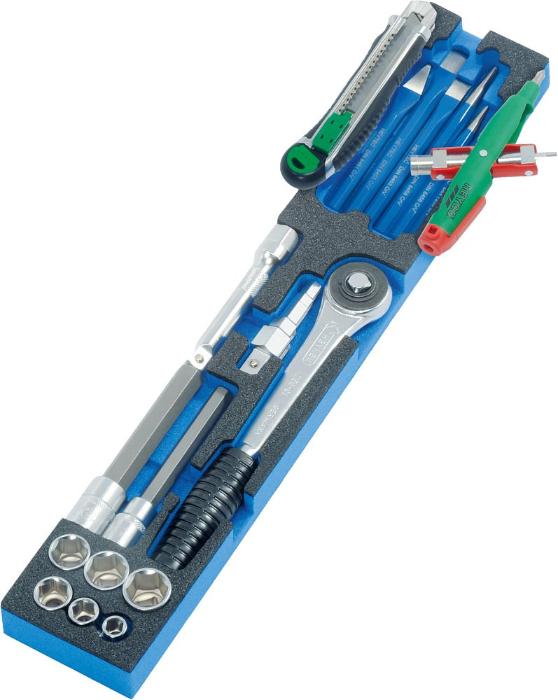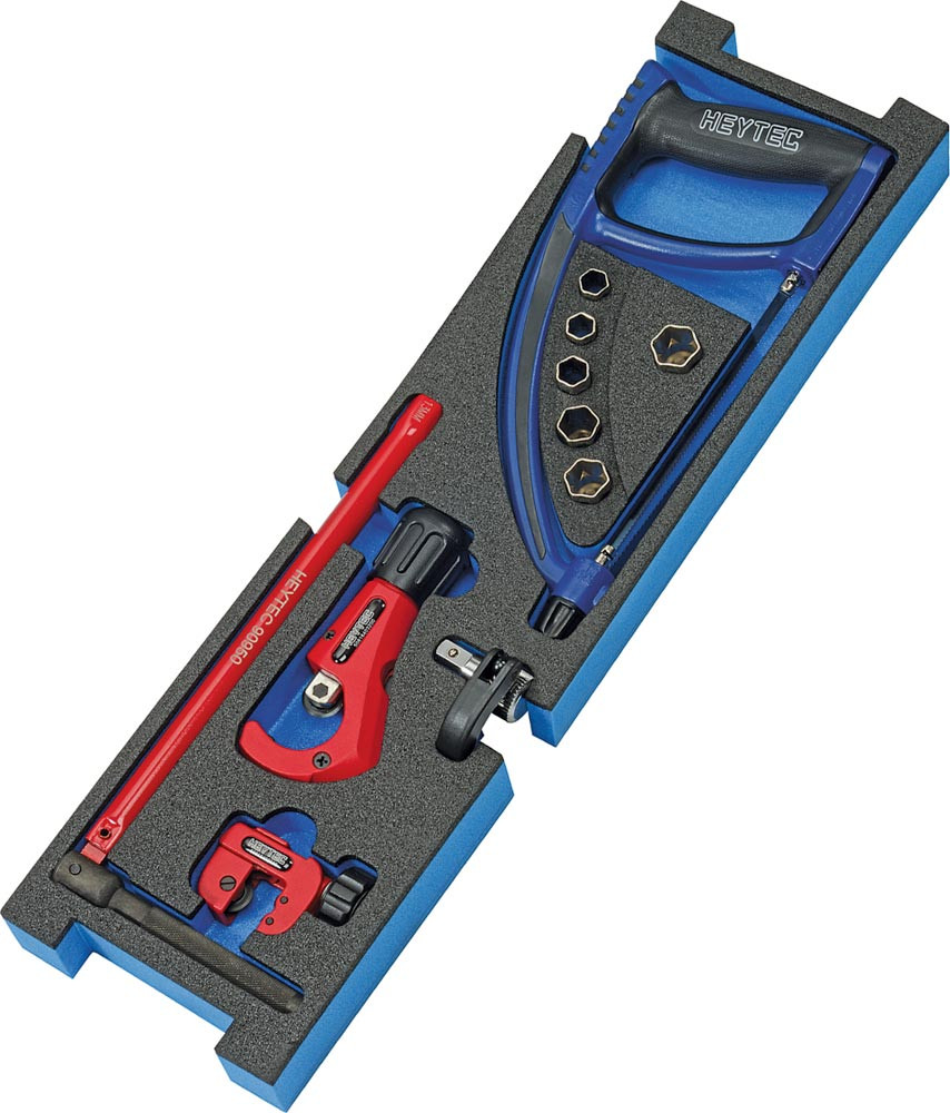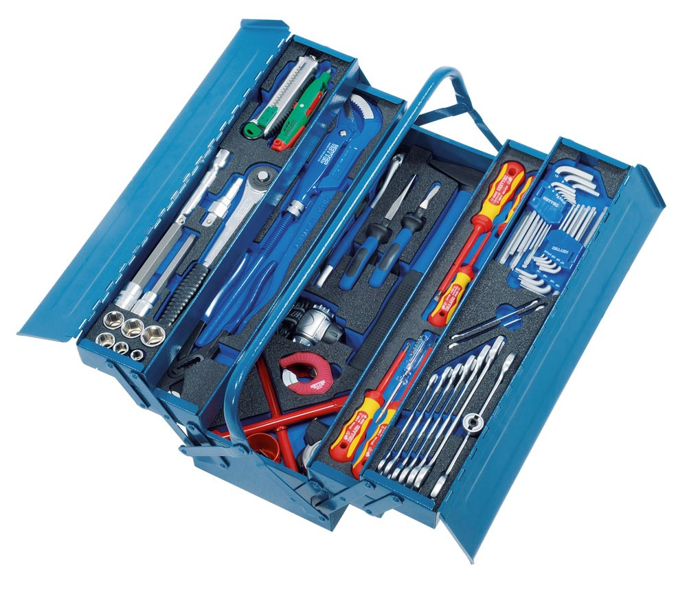 Ausführung: "Profi-Werkzeug"-Sortiment für den Sanitärbereich ∙ Im robusten 5tlg. Werkzeugkasten, hammerschlagblau ∙ Mit 2-K-Schaumstoff-Einlage