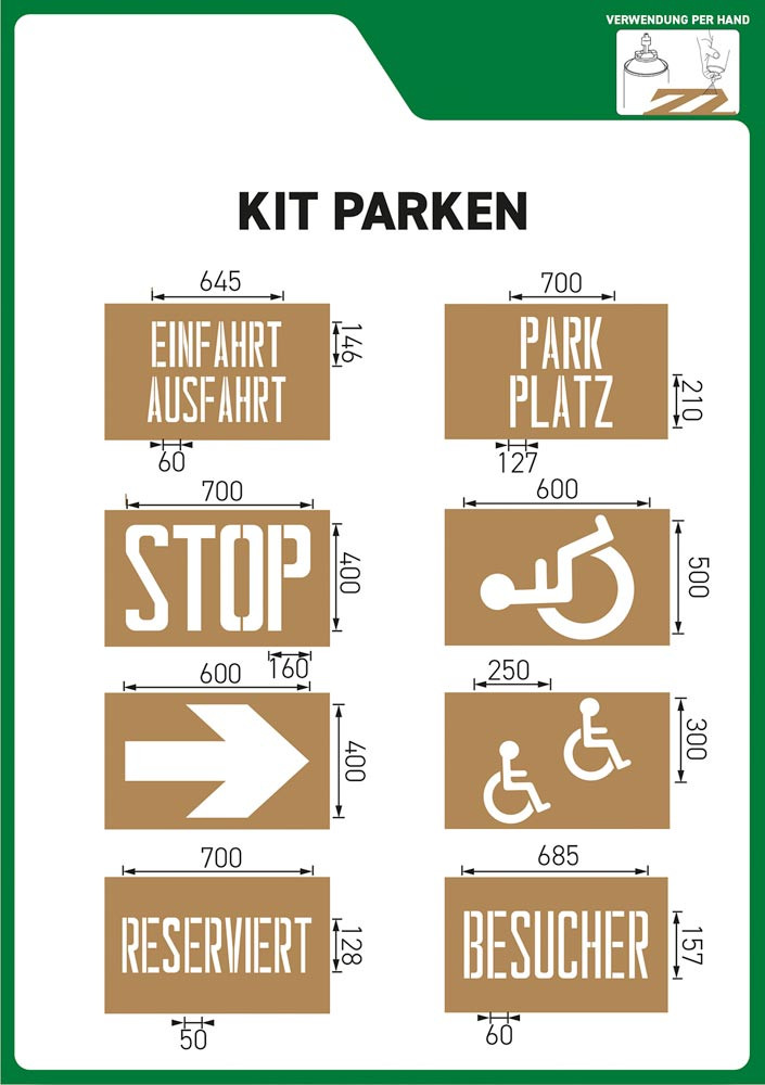 Schablonen-Set aus 8 verschiedenen Schablonen, Parkplatz