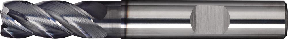 VHM · Universal-Feinstkorn · TiAlN-beschichtet · DIN 6527 L (ähnlich) · Typ INOX/HPC · Vierschneider · lang · 45° Schutzfase · Zentrumschnitt · mit Zylinderschaft nach DIN 6535 HB · ungleiche Steigung · ungleiche Teilung · rechtsschneidend · Halsfreischliff ab Nenn-Ø 6 mm · Einsatzempfehlung: Für vibrationsarme Bearbeitung, zum Schruppen und Schlichten geeignet. Durch bewährte HPC-Geometrie und Multilayer-Beschichtung universell einsetzbar. Insbesondere zum Fräsen in VA-Werkstoffen, TITAN und Sonderlegierungen geeignet, durch speziellen Schneidkantenschliff