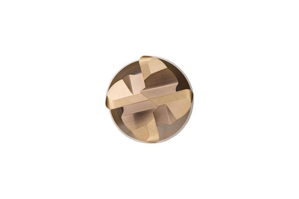 Extra kurzer radiusfräser mit 4 Schneiden · Durchmesser 10mm mit 11mm Schnittlänge · 70mm Gesamtlänge · 31mm erreichbare Lämge mit Halsfreischliff und 1mm Eckenradius · gemäß DORMER Standard mit einem 10mm Zylinderschaft · VHM mit TiSiN Beschichtung · 45° Helix und -10° Spanwinkel zum Schulterfräsen · Tauchfräsen · progressiven Eintauchfräsen · Rampenfräsen und Helikalfräsen in gehärtete Materialien