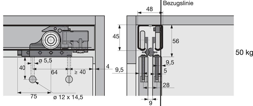 Schiebetürbeschlag Top Line 1 3 Komplett Set 50 kg DIN links / rechts E6431087