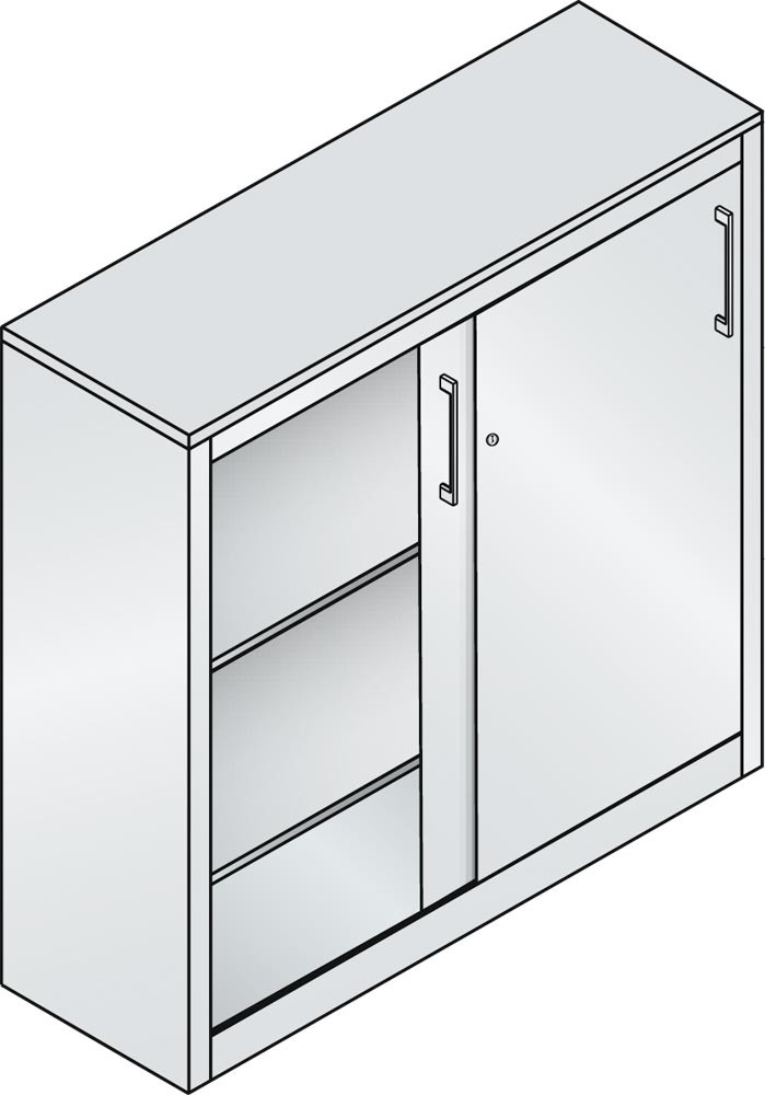 ∙ In 3 Höhen und 3 Breiten als Beistellschrank zum Arbeitsplatz in Schreibtischhöhe, als Thekenschrank oder als Standard-Aktenschrank ∙ Durch Aufbauschränke individuell erweiterbar ∙ Auch in geöffnetem Zustand äußerst platzsparend ∙ Kein Platzbedarf für in den Raum ragende Türen