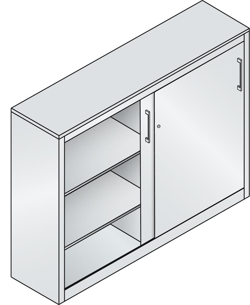 Schiebetürenschrank, BxTxH 800x400x720 mm, 2 OH, 1 Boden, Korpus/Türen RAL 7035 lichtgrau E859301
