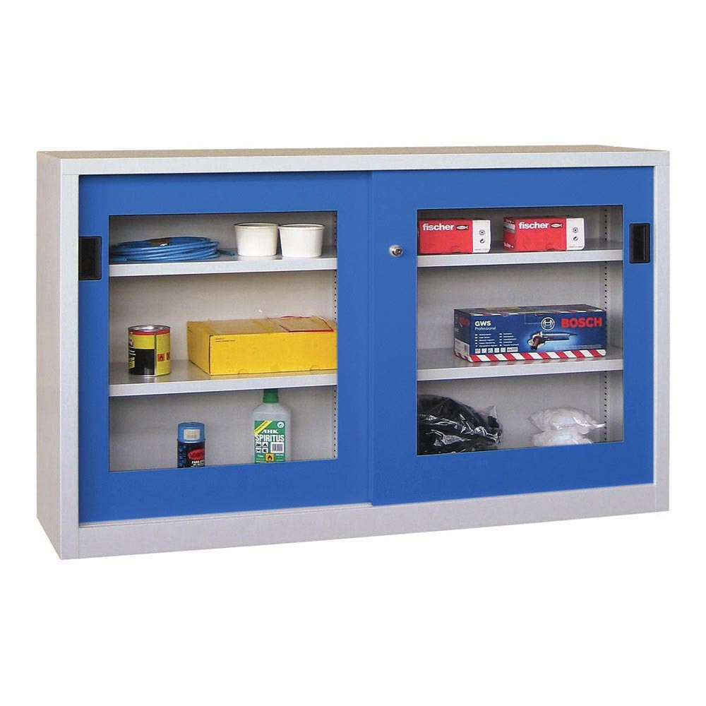 Schiebetürenschrank, Sichtfenstertüren, 2 verzinkte Böden, ohne Trennwand, BxTxH 1000x400x1000 mm, RAL 7035/3000 E875305
