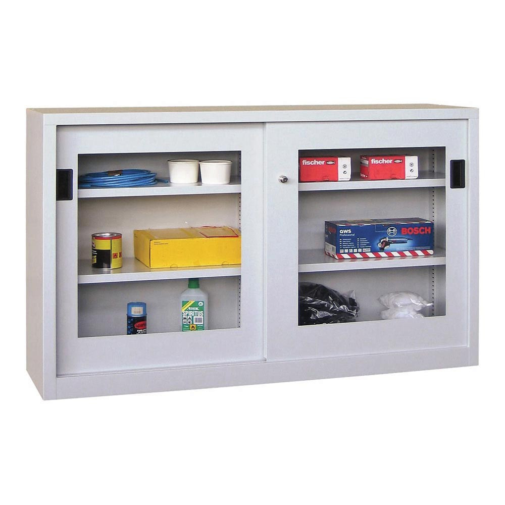 Schiebetürenschrank, Sichtfenstertüren, 2 verzinkte Böden, ohne Trennwand, BxTxH 1000x400x1000 mm, RAL 7035/3000 E875305