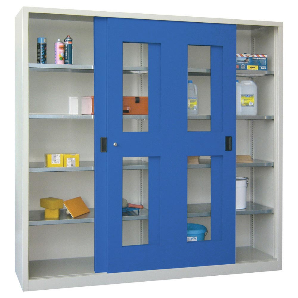 Schiebetürenschrank, Sichtfenstertüren, 4 verzinkte Böden, ohne Trennwand, BxTxH 1000x500x1950 mm, RAL 5010 E875597