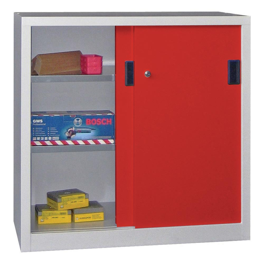 Schiebetürenschrank, Vollblechtüren, 2 verzinkte Böden, ohne Trennwand, BxTxH 1000x400x1000 mm, RAL 7035/3000 E875737