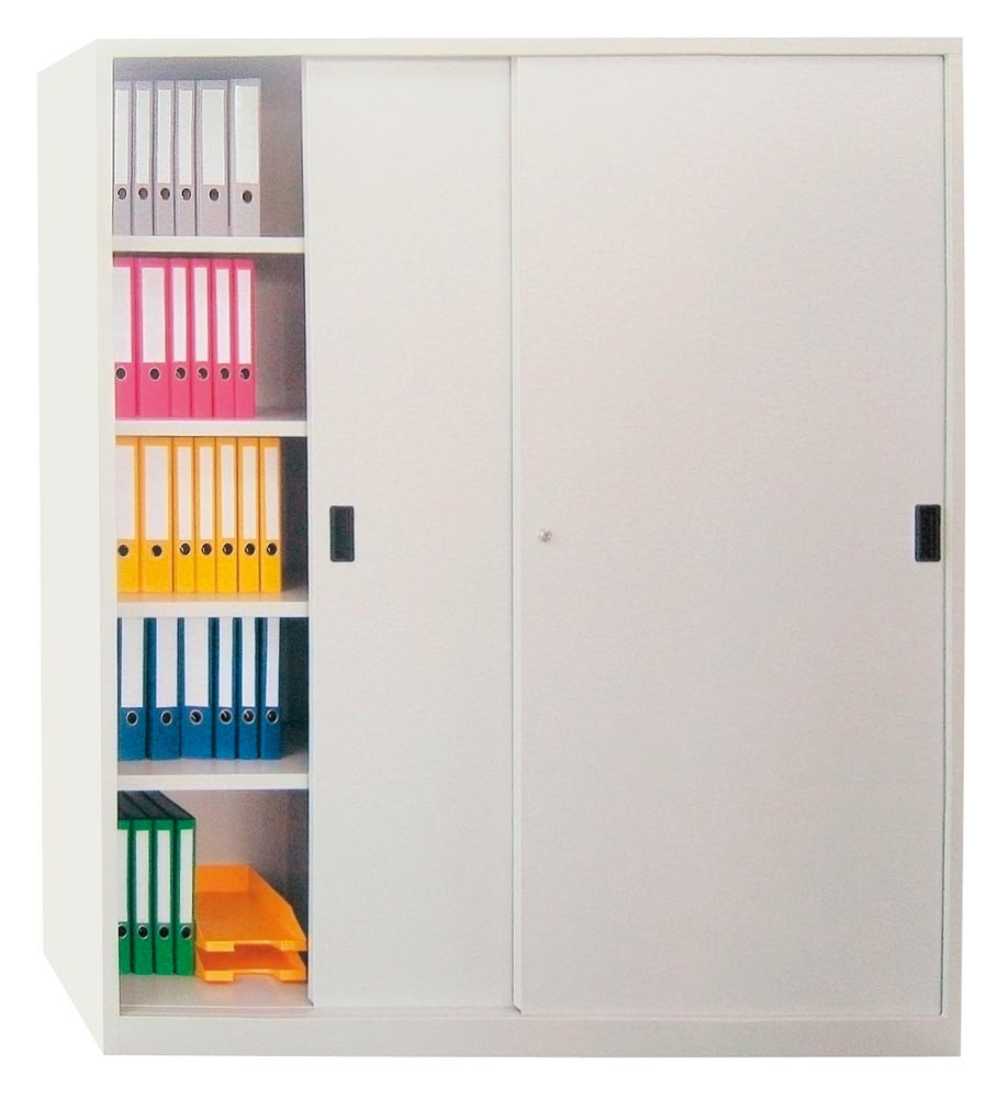 Schiebetürenschrank, Vollblechtüren, 4 verzinkte Böden, ohne Trennwand, BxTxH 1000x400x1950 mm, RAL 7035 E875880