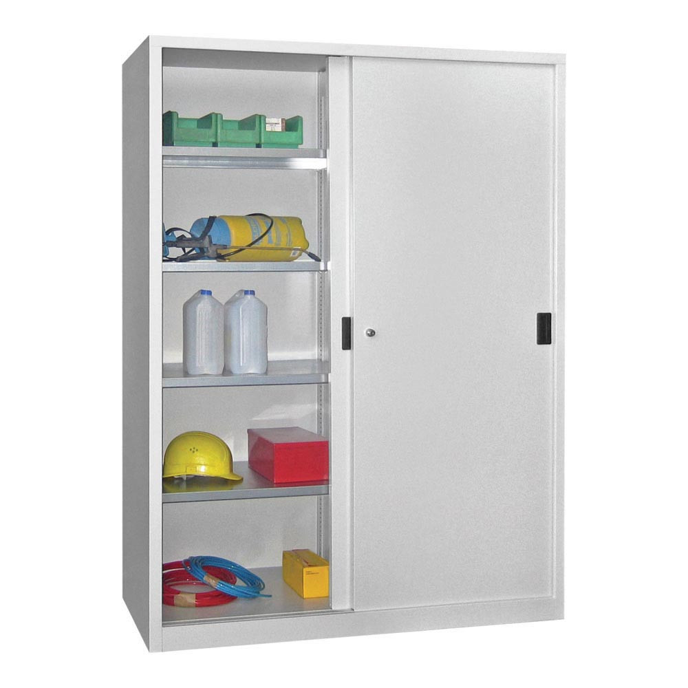 Schiebetürenschrank, Vollblechtüren, 4 verzinkte Böden, ohne Trennwand, BxTxH 1000x400x1950 mm, RAL 7035 E875880