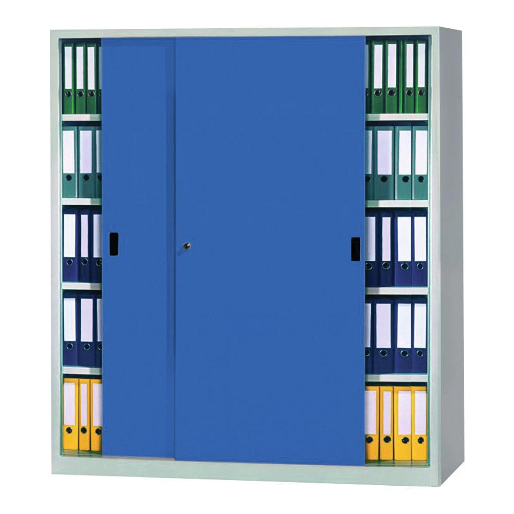 Schiebetürenschrank, Vollblechtüren, 4 verzinkte Böden, ohne Trennwand, BxTxH 1000x400x1950 mm, RAL 7035/5010 E875882