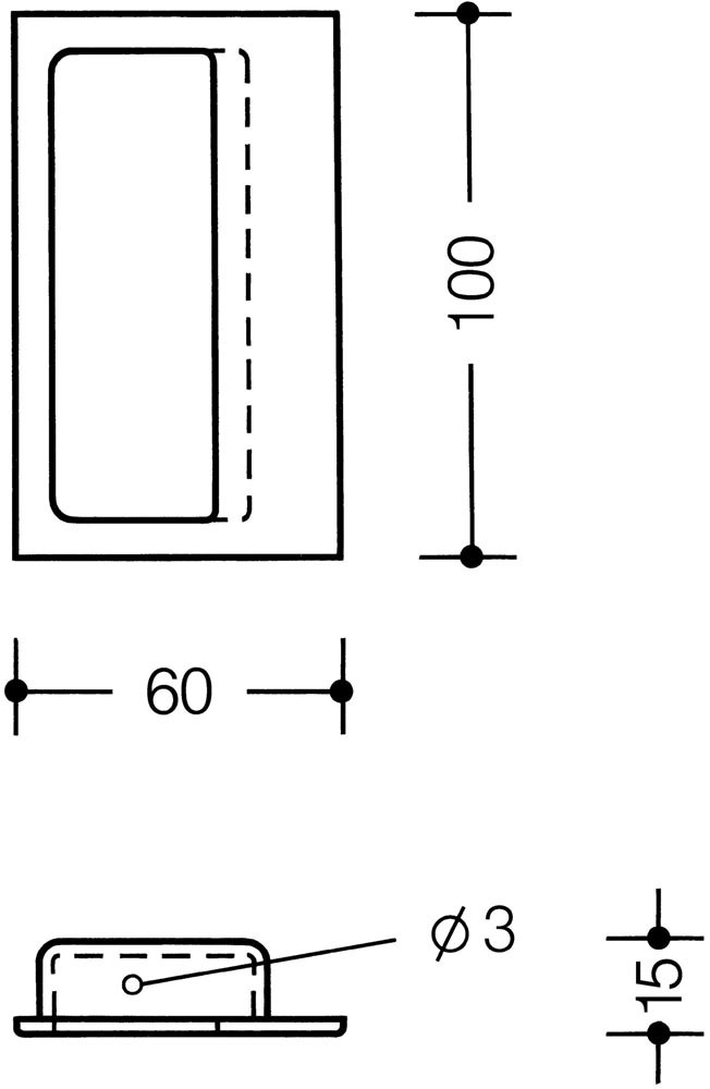 aus durchgefärbtem Polyamid · rechteckige Form 100 x 60 mm · Einlassmaße 90 x 42 mm · Einlasstiefe 15 mm · mit einseitiger Griffmulde · Edition matt