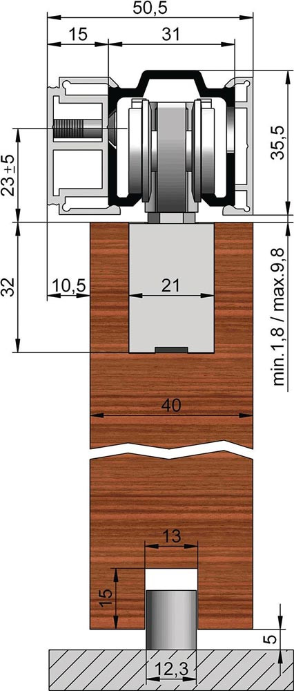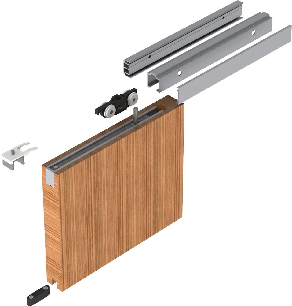 Schiebetürsystem 73 Avantgarde 80 kg 2100 mm EV1 eloxiert Holztüren ab 35 mm Komplettgarnitur 860-1050 mm Wandmontage