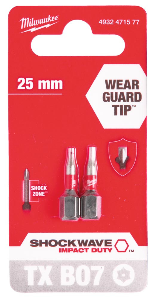 Ausführung: Aus spezialgehärtetem Stahl ∙ Mit lasergehärteter "WEAR GUARD TIP™ Bitspitze für hohe Genauigkeit und längerer Lebensdauer ∙ Flexible SHOCK ZONE™ verringert die Belastung auf die Bitspitze veringert die Bruchgefahr und absorbiet die Schlageinwirkung ∙ Antrieb 1/4" Sechskant nach DIN 3126-C 6,3 ∙ Pack `a 2 Stück