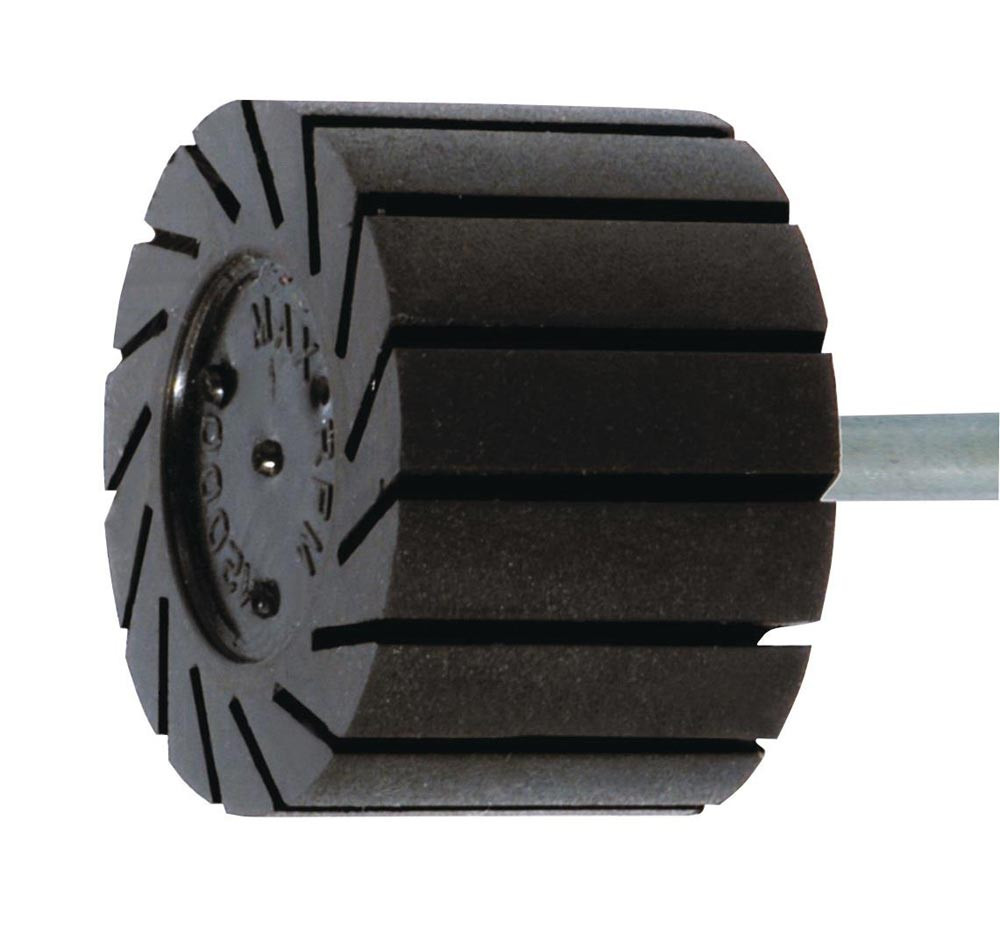 aus Gummi · zylindrische Form · geschlitzt · durch die Schlitze wird die Ausdehnung des Schleifkörpers beim Schleifen erleichtert, dadurch wird die Schlefhülse gespannt, sowie die Elastizität erhöht · rutschfester Sitz der Schleifhülse · Schleifhülsen werden durch eine leichte Rechtsdrehung auf- und abgezogen
