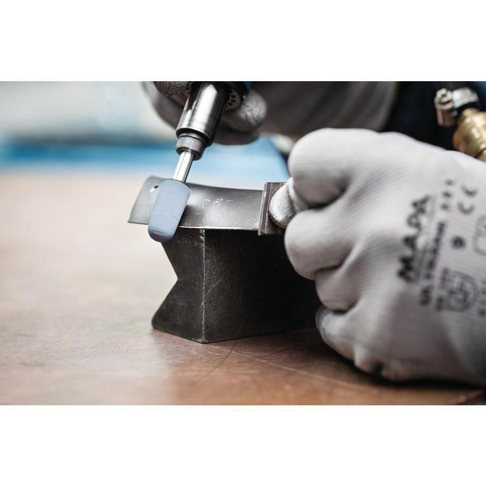 · Anwendungsempfehlungen: Für einen leichten Wechsel der Schleifkappen und -hülsen diese unter leichter Rechtsdrehung auf- und abziehen. Dabei den Werkzeugträger in den Werkzeugantrieb eingespannt lassen und fixieren., Für beste Leistung bei einer empfohlenen Schnittgeschwindigkeit von 10–20 m/s einsetzen.