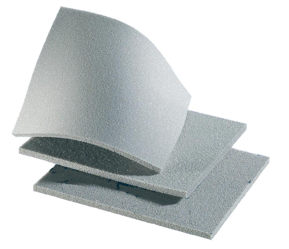 einseitig beschichtet · Spezialschleifmatte universell einsetzbar · mit Schleifkorn (Korund) besetzt · hohe Flexibilität für die Bearbeitung flächiger und leicht geformter Werkstücke · offenporige Struktur, deshalb geeignet zum Zuschmieren neigender Werkstoffe wie Füller, Spachtel, Lack, Feinschliff von Holz und zum Zwischenschleifen von Grundierungen