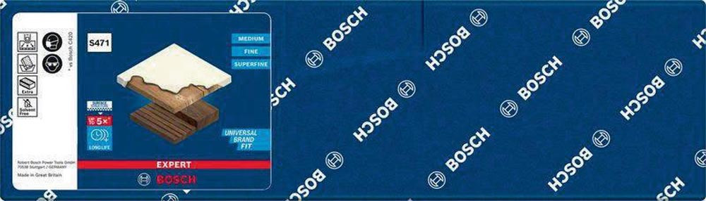 Schaumstoff · zum Handschleifen · längere Lebensdauer beim Schleifen von Holz und Farbe · mit Bosch Surface Structure · verliert keine Körnung · das Verstopfen des Schleifschwamms wird minimiert, da Staub einfach ausgeklopft oder abgewaschen werden kann