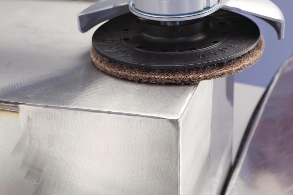 SCD-Vliesscheibe · synthetisches Nylonvlies mit Korundschleifkorn gleichmäßig durchsetzt · Vollkunstharz · wasserfest, ideal geeignet u.a. für Edelstahlbearbeitung · Reduktion der Vibration um ca. 50% · ungelocht · kletthaftend
