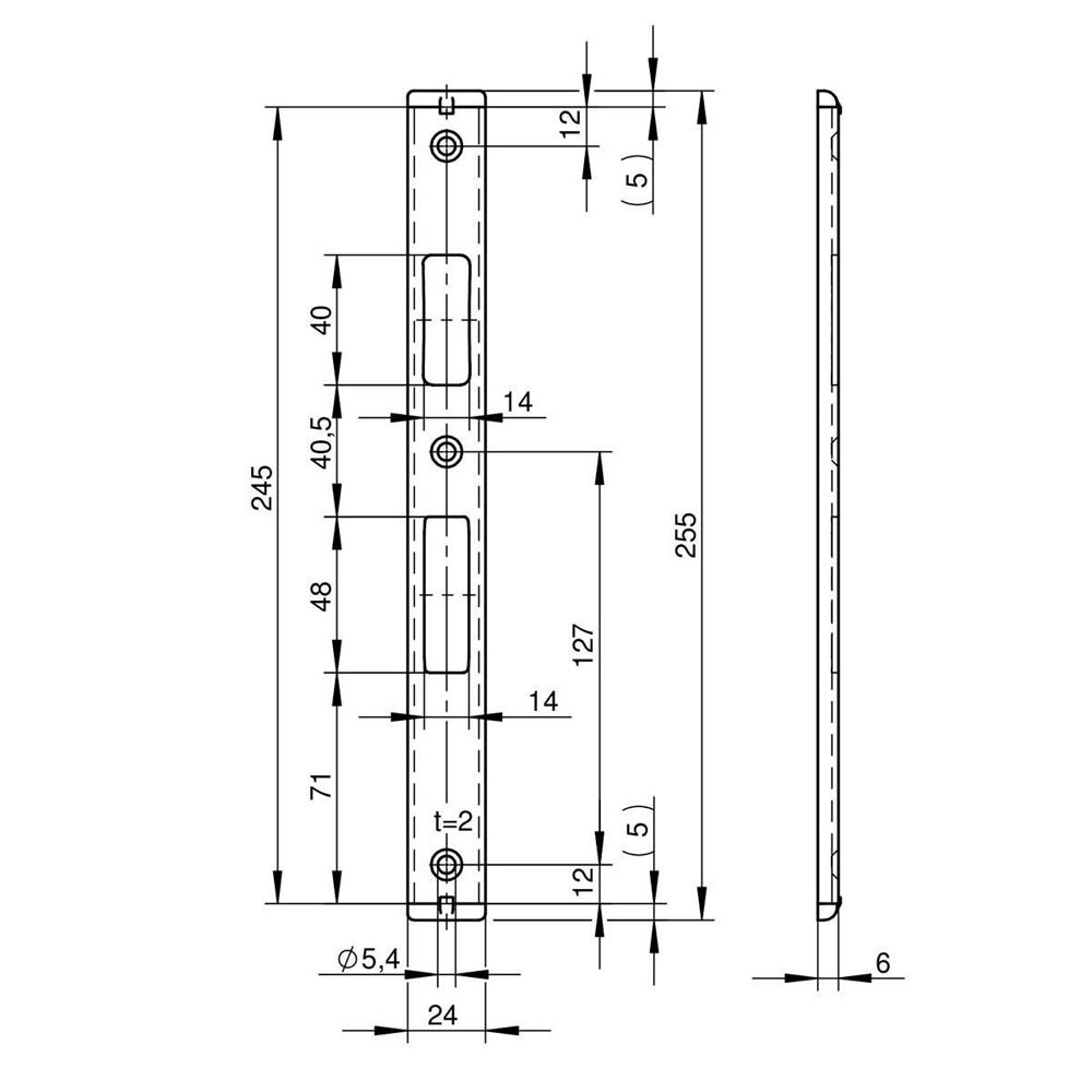 U-Schließblech, Falle und Riegel, 245x24x6mm · Edelstahl matt gebürstet