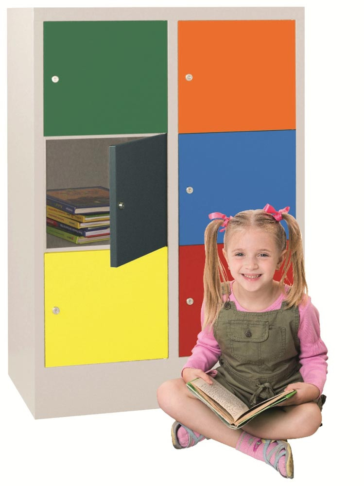 Schließfachschrank Kindergarten/Schule, Sockel, 9 Fächer 400 mm, BxTxH 1200x500x1187 mm, Zylinderschloss RAL 7035