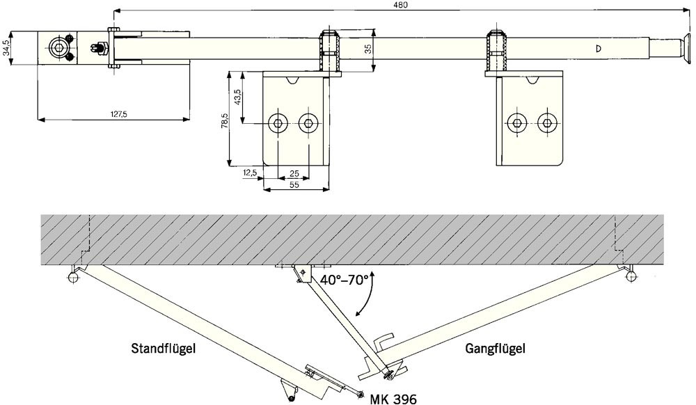 aufliegend · rein mechanisch arbeitend · für 2-flügelige (Feuer- und Rauchschutz) Türen · wird auf der Türzarge montiert · links und rechts verwendbar · gewährleistet die folgerichtige Schließung der Türflügel