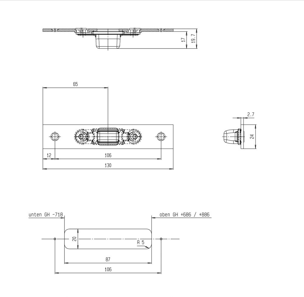 für Mehrfachverriegelung 855 GL · Edelstahl · Verrieglungsart Bolzenriegel · passend für Kunststoff- / Aluminiumfenster / -Türen